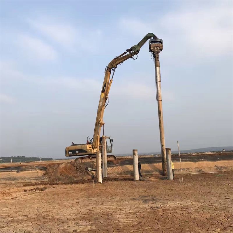 Она может забивать и извлекать шпунтовые сваи, стальные рельсовые сваи, H-образные стальные рельсовые сваи и H-образные стальные шпунтовые сваи, а также применима для строительства фундаментов, таких как противопаводковые сооружения, дамбы, дренаж, земляные работы, подпорные стены и поверхности склонов.